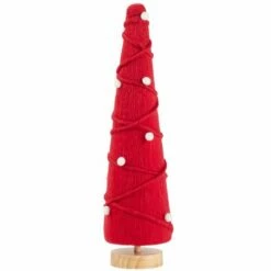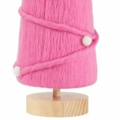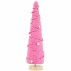 Decorate your home in a unique and fun way with this colorful Tabletop Tree. It looks like it’s made of yarn wrapped round and round to create the tree shape. Then it’s accented with white pom-poms to suggest ornaments. Made from: Foam, polyester and woodMeasurements:4-1/2″ dia. x 16″H