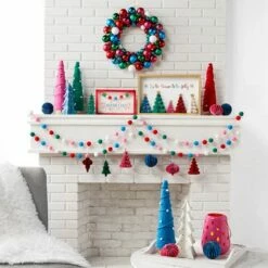 Decorate your home in a unique and fun way with this colorful Tabletop Tree. It looks like it’s made of yarn wrapped round and round to create the tree shape. Then it’s accented with white pom-poms to suggest ornaments. Made from: Foam, polyester and woodMeasurements:4-1/2″ dia. x 16″H