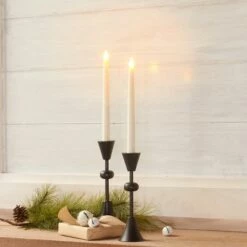 Add a touch of elegance to your home with this Taper Candleholder. It features a sleek, modern design in black. Has a metal insert to hold your own LED or wax taper candle. Made from: MetalMeasurements: 9″ Candleholder, 2-3/4″ dia. x 9″10″ Candleholder, 2-3/4″ dia. x 9-3/4″H13″ Candleholder, 3-1/2″ dia. x 13-1/4″H