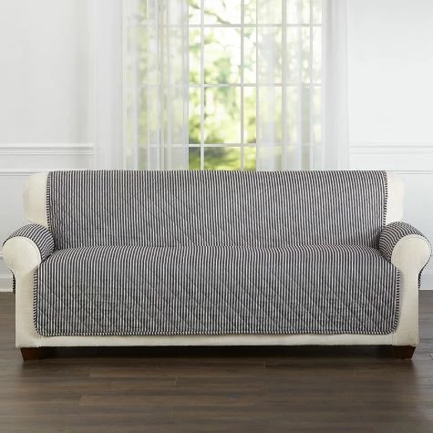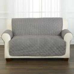 Protect your upholstered furniture from pets, kids, spills and wear-and-tear with these covers. The ticking stripe fabric will add a sophisticated, stylish look to any piece of furniture. Chair65″W x 75″L, overall- Back flap, 39″L- Arm flap, 21-1/2″W- Seat, 22″W- Seat flap, 36″LPolyesterImportedLoveseat88″W x 75″L, overall- Back flap, 39″L- Arm flap, 21-1/2″W- Seat, 45″W- Seat flap, 36″LPolyesterImportedSofa110″W x 75″L, overall- Back flap, 39″L- Arm flap, 21-1/2″W- Seat, 67″W- Seat flap, 36″LPolyesterImported