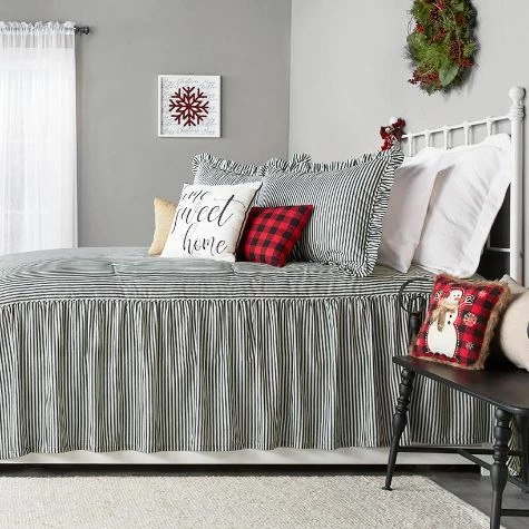 Ticking Stripe Skirted Bedspread Ensemble