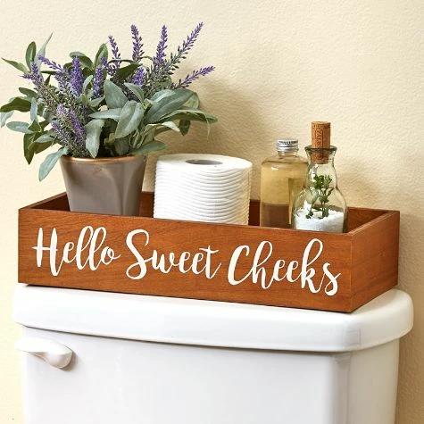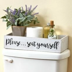 Maximize the storage space in your bathroom with a Toilet Tank Topper Tray. The wooden box is perfect for holding air fresheners, toilet paper, soaps and more. Made from: MDFMeasurements: 16″W x 7″D x 3-1/2″H