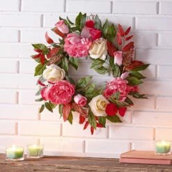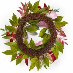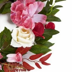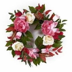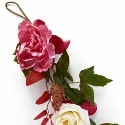 Add a romantic, vintage-inspired touch to your home with these Vintage Chic Decor Accents. Both the Wreath and the Garland feature faux flowers in shades of ivory, mauve and dusty rose, with multi-tonal greenery. Display indoors or on a covered porch. Wreath17″ dia.Plastic and grapevineGarland5’LPlastic and metal