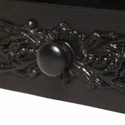 Keep track of remotes, glasses and other electronics with a Vintage-Inspired Remote Control Organizer. It’s a decorative way to store them neatly. The front of the organizer is designed to look like a vintage drawer. Has 2 slots for holding your items. Made from: MDFMeasurements: 9″W x 5-1/2″D x 6″H