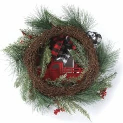 Add to your home decor with the charming Vintage Red Truck Holiday Collection. The collection includes the Sled Wall Decor, the Wooden Arch Wall Decor, the String Lights and the Wreath. Warm your own tarts in the Tart Warmer. Place the Lighted Breeze Blocker under a door or window to keep cold air out. Sled Wall Decor 10-1/4″W x 21″LMDF Wooden Arch Wall Decor 28-1/2″W x 13-1/2″L MDF Tart Warmer 5″ dia. x 5-1/4″H Ceramic String Lights 54″LPlastic Requires 2 “AA” batteries Lighted Breeze Blocker31″W x 5″LPolyesterRequires 2 “AA” batteriesImported Wreath 15″ dia.Plastic, MDF and polyesterImported