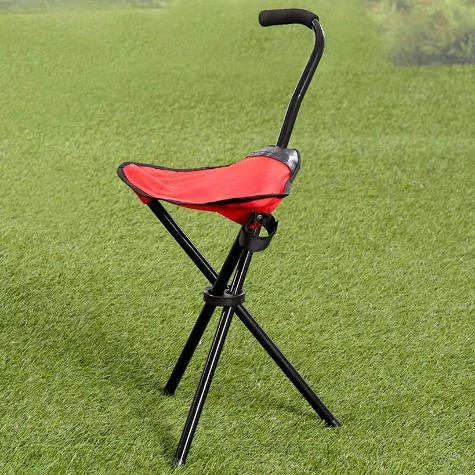 Sit and rest anywhere, anytime with this Walking Cane Seat. The lightweight cane easily converts into a seat. A heavy-duty fabric-magic strap ties up the seat when not in use. Includes a drawstring tie carrying bag with a shoulder strap. Great for sporting events, golf outings, shopping and more! Made from: Steel, polyester and plasticMeasurements: Cane, 5-1/2″W x 32-5/8″H, closedSeat, 12-1/4″ x 12-1/4″