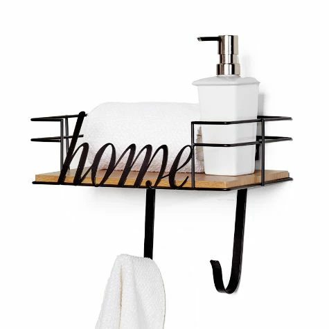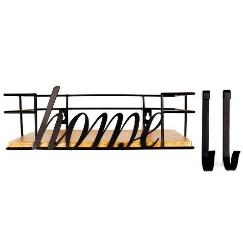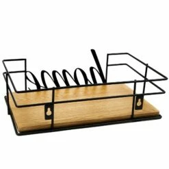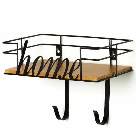 Save space in your laundry room with this Wall-Mount Ironing Board Hanger. In addition to two long metal hooks to hang your ironing board, it has a storage basket with a wooden base to hold your iron, steamer, dryer sheets and more. Everything is kept off the floor and easily accessible–not stacked in a corner or on a closet shelf. Made from: Metal and MDFMeasurements: 12″W x 8″ sq.Notes: Assembly required; assembly hardware included