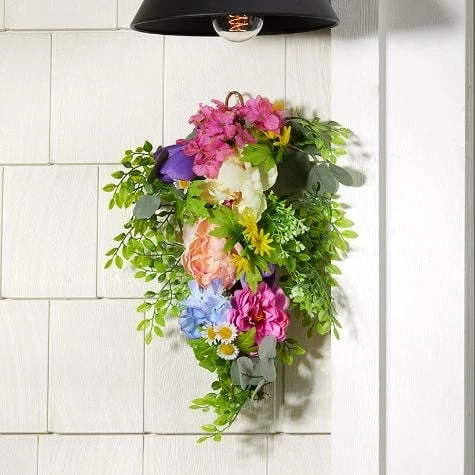 Add a country touch to your home with this Welcome Spring Front Porch Decor. The oversized LED Candle Lantern brings the flickering effect of real candles to your home with 3 built-in flameless candles. Place it in your home or on a covered front porch. The Metal Envelope Mailbox can serve as a mailbox mounted on the exterior of your home or as a storage box for mail, magazines and more inside your home or office. Hinged top with a magnetic closure. The Welcome Sign with Planter can hang or lean against the porch wall. The Wreath and the Swag both feature a beautiful assortment of country flowers in a mix of vibrant and muted tones, along with multi-tonal greenery. LED Candle LanternRequires 3 “AA” batteries9-3/8″ sq. x 25-1/2″HPolypropylene with glass panelsWelcome Sign with Planter7-3/4″W x 39-1/2″LWood and metalEasy assembly required; assembly hardware includedMetal Envelope Mailbox12″W x 3-1/2″D x 9″HWreath18″ dia.Rattan and plasticSwag15″W x 4″D x 21″HRattan and plastic