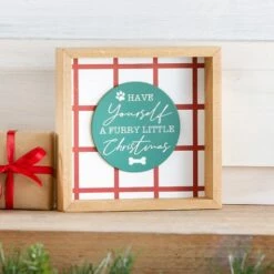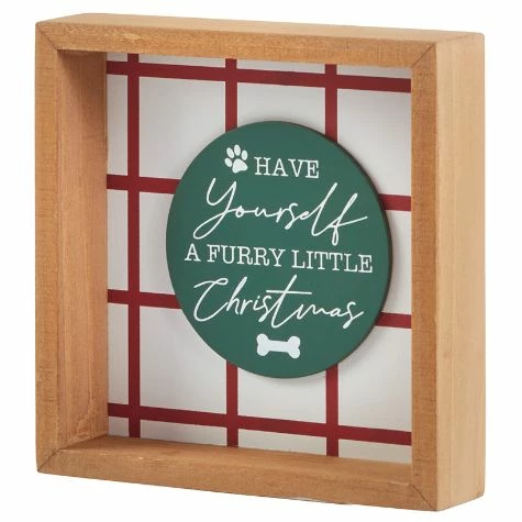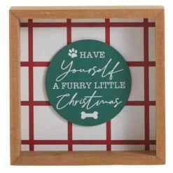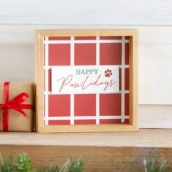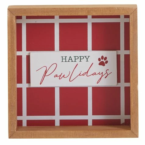 Celebrate your furry friend with this Windowpane Pet Sign. Display it on a table, windowsill or bookcase. It features the traditional colors of the holiday and is framed in a natural wood color. Made from:MDFMeasurements:6″ sq.