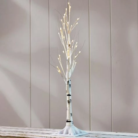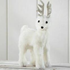 This adorable Winter Woodland Collection evokes the tranquility of the woods in winter. Create a forest backdrop with the Lighted Birch Trees on a table, shelf or anywhere indoors. Place the Lighted Centerpiece in front of the trees, along with the owls and the deer with their sparkly silver antlers. Complete the scene with the Lighted Wreath, featuring a winter white deer and trees, hanging on a nearby wall. The centerpiece and the wreath are trimmed with snow-flocked faux pine and pine cones. Small Birch TreeRequires 3 “AA” batteries 4″ dia. x 24″HPlastic and metalLarge Birch TreeRequires 3 “AA” batteries 7″ dia. x 36″H Plastic and metal Lighted CenterpieceRequires 3 “AAA” batteries 18-1/2″W x 7″D x 12-1/4″HPlastic, metal, wood and natural materialsOwlSmall, 4″W x 3-1/4″D x 7″HLarge, 6-1/4″W x 4-1/4″D x 9″HFoam DeerSitting deer, 6-1/4″W x 3-1/2″D x 9″HStanding deer, 6-1/4″W x 3-1/8″D x 11″HFoam and plastic Lighted WreathRequires 3 “AAA” batteries 18-1/2″W x 5″D x 17″H Rattan, plastic and polyester